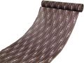 落ち着いた印象の深い茶色の地色に、金茶色のストライプ模様が染められ、その間には絣風の模様が白く染められています。ところどころには小花模様も描かれています。